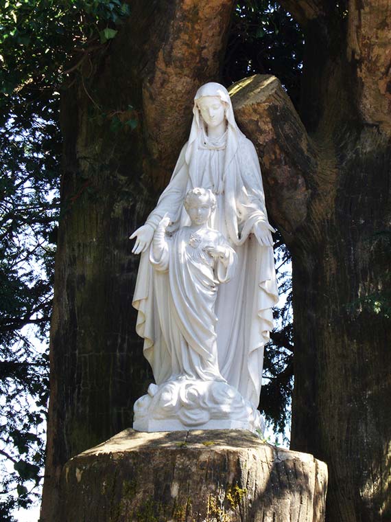Veneramos a María con el título de Nuestra Señora del Sagrado Corazón, ella es nuestra intercesora, la Abogada de las causas difíciles. En cada país, se trata de inculturar la imagen de María, manteniendo siempre la íntima relación entre la Madre y el Hijo; vemos a María sosteniendo el Corazón de su Hijo y a Él señalando con una mano a su Madre y con la otra tocando su propio corazón. Esto simboliza que llegamos al Corazón del Hijo por medio de la Madre.